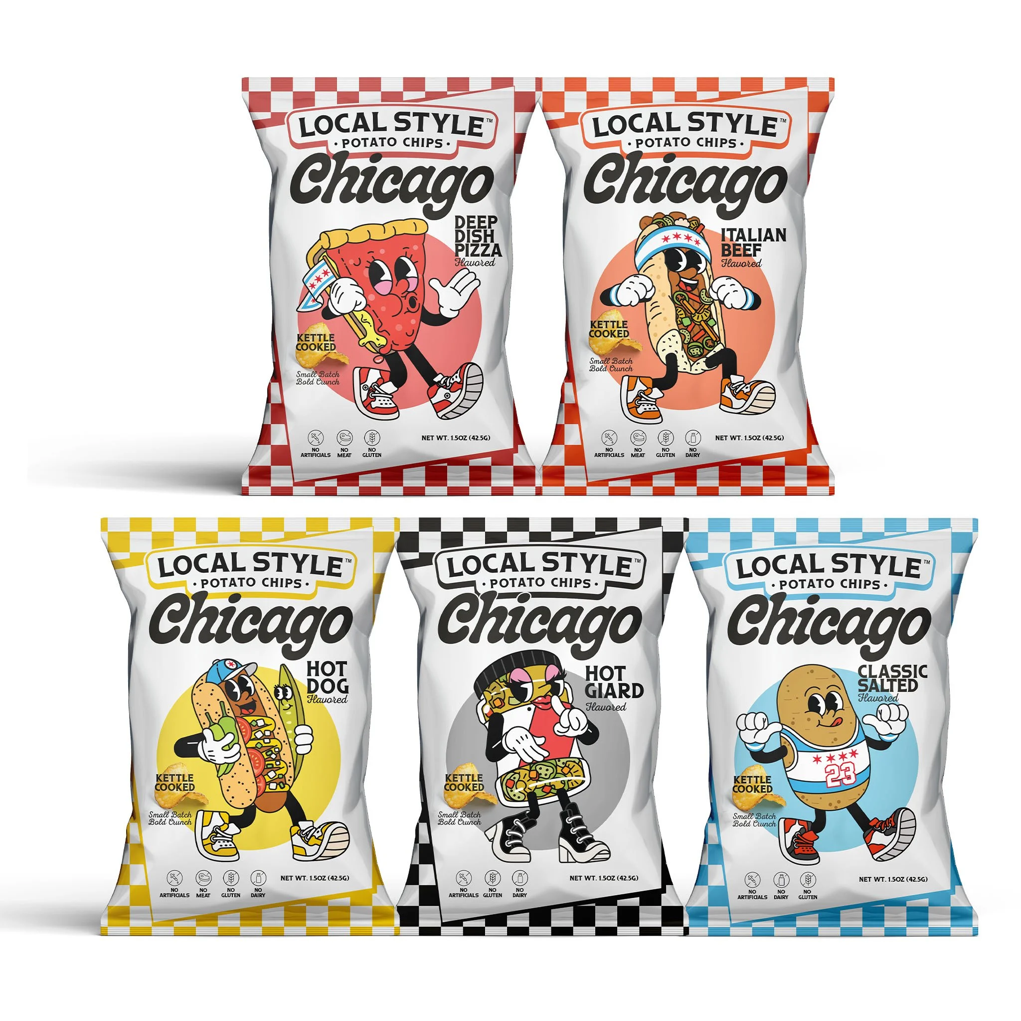 Brand creation and package design for a woman-owned chip brand, made for Chicago.